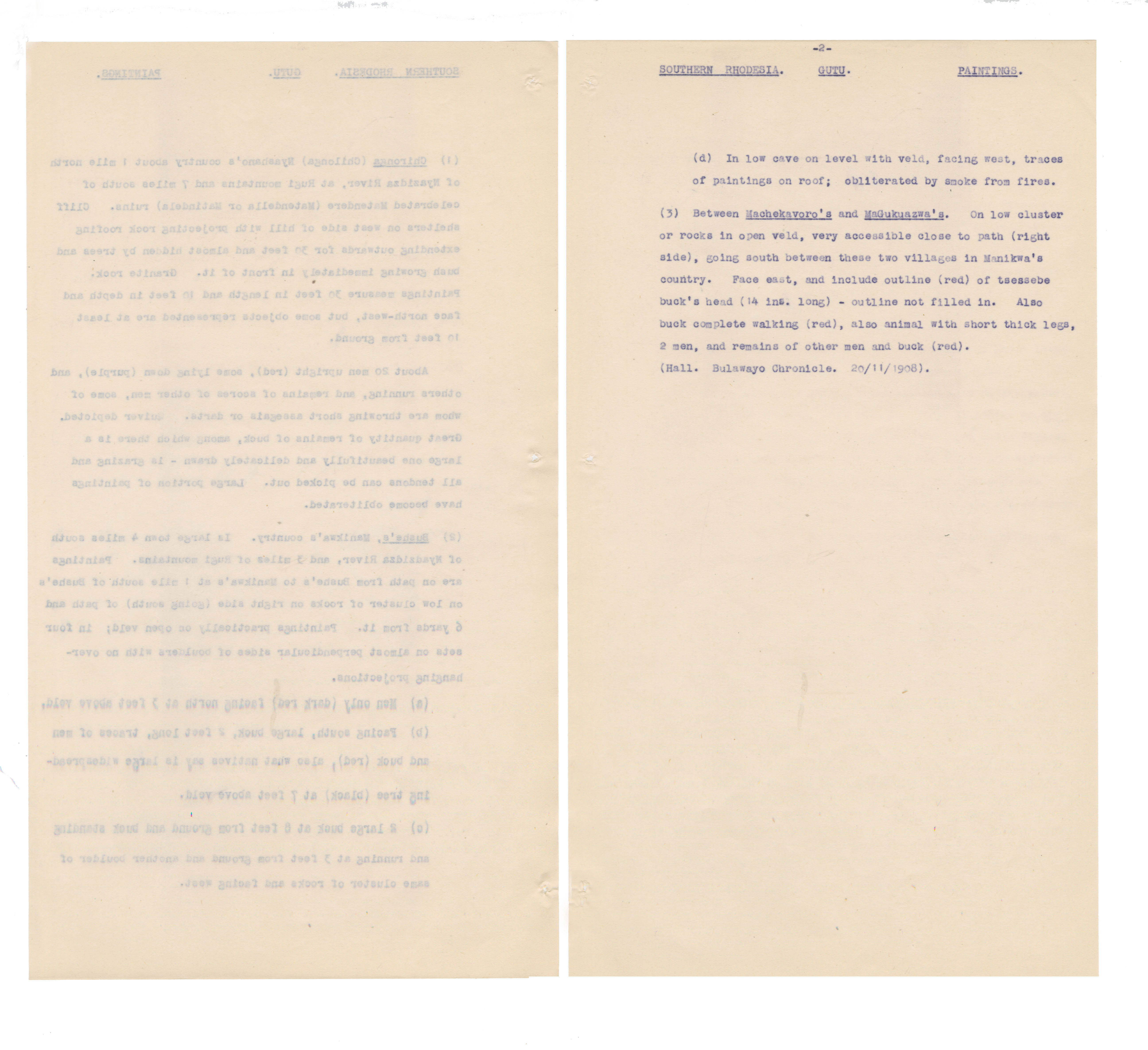 Typewritten notes (facsimiles?) on sheer paper about southern African rock engravings.