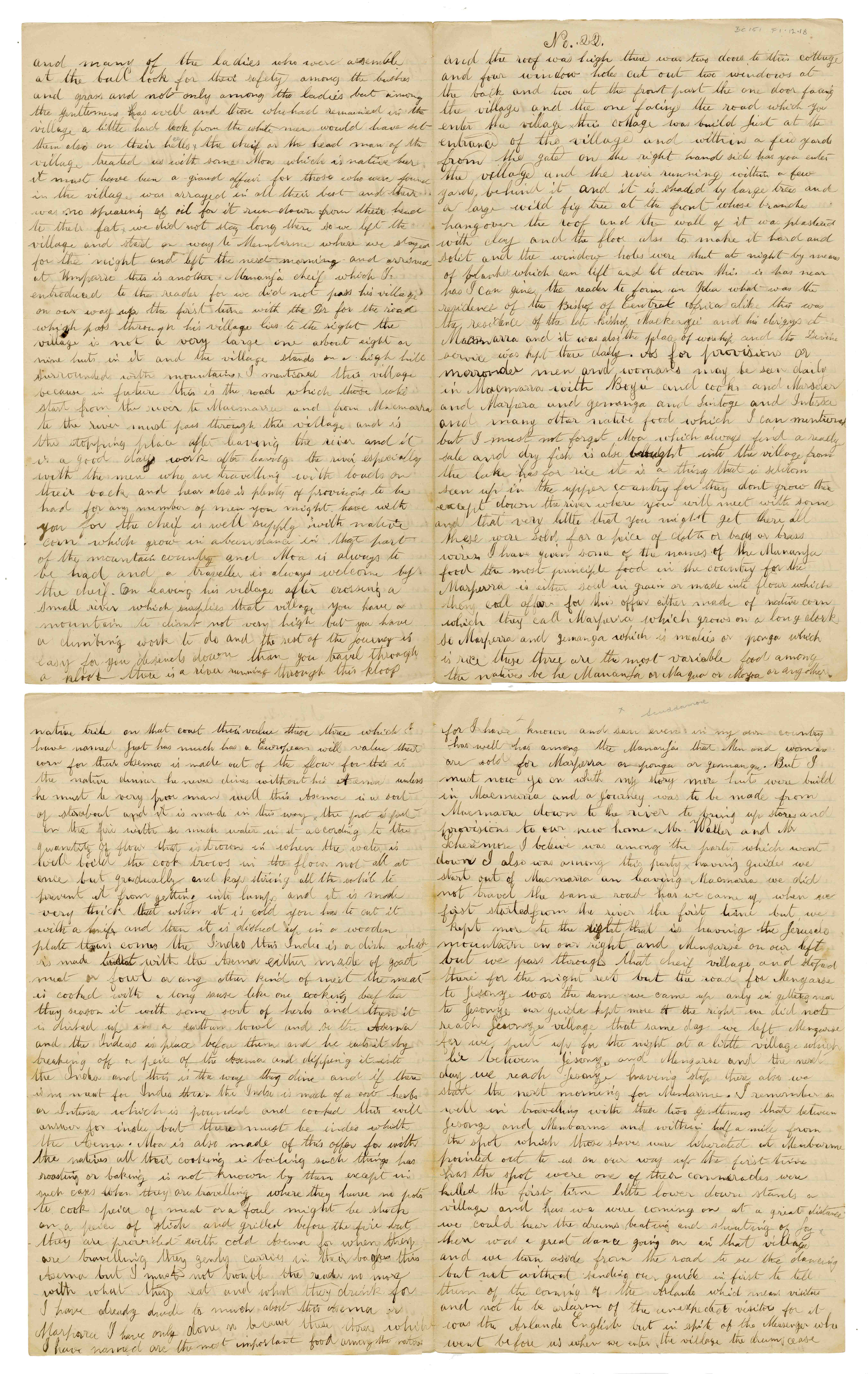 Sheet No. 22 of 'A Negro's History of Bishop Mackenzie's Mission to Central Africa' (MS), partly corrected by WHI Bleek. The Universities' Mission to Central Africa (UMCA), led by Bishop Charles Mackenzie, operated in a region that crossed what are now the borders of Mozambique and Malawi (formerly Nyasaland). After Mackenzie's death (in 1862) and the failure of the Magomero mission, the UMCA relocated to other areas, including Zanzibar, where it became very successful.