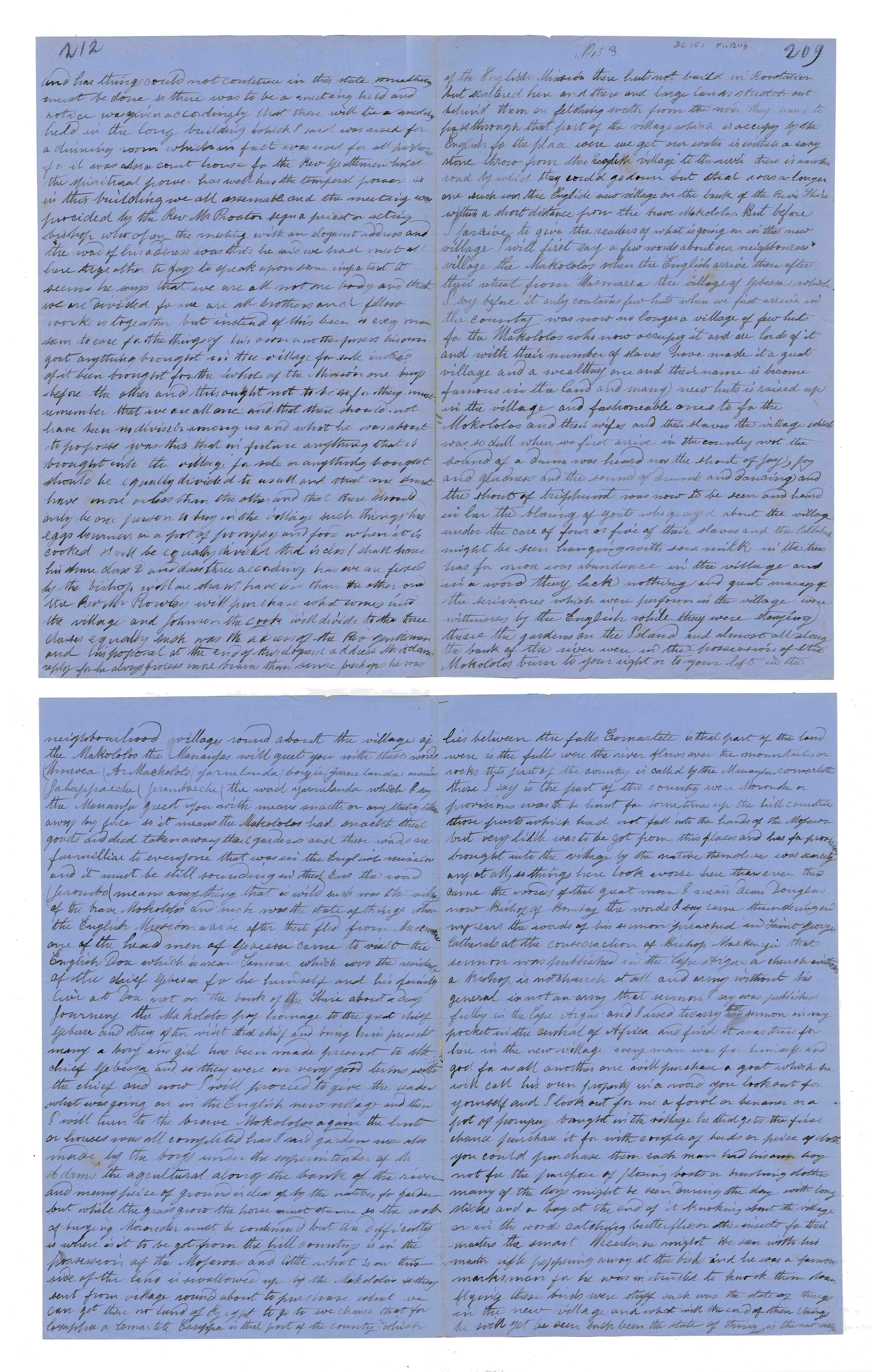 Sheet No. 53 of 'A Negro's History of Bishop Mackenzie's Mission to Central Africa' (MS), partly corrected by WHI Bleek. The Universities' Mission to Central Africa (UMCA), led by Bishop Charles Mackenzie, operated in a region that crossed what are now the borders of Mozambique and Malawi (formerly Nyasaland). After Mackenzie's death (in 1862) and the failure of the Magomero mission, the UMCA relocated to other areas, including Zanzibar, where it became very successful.