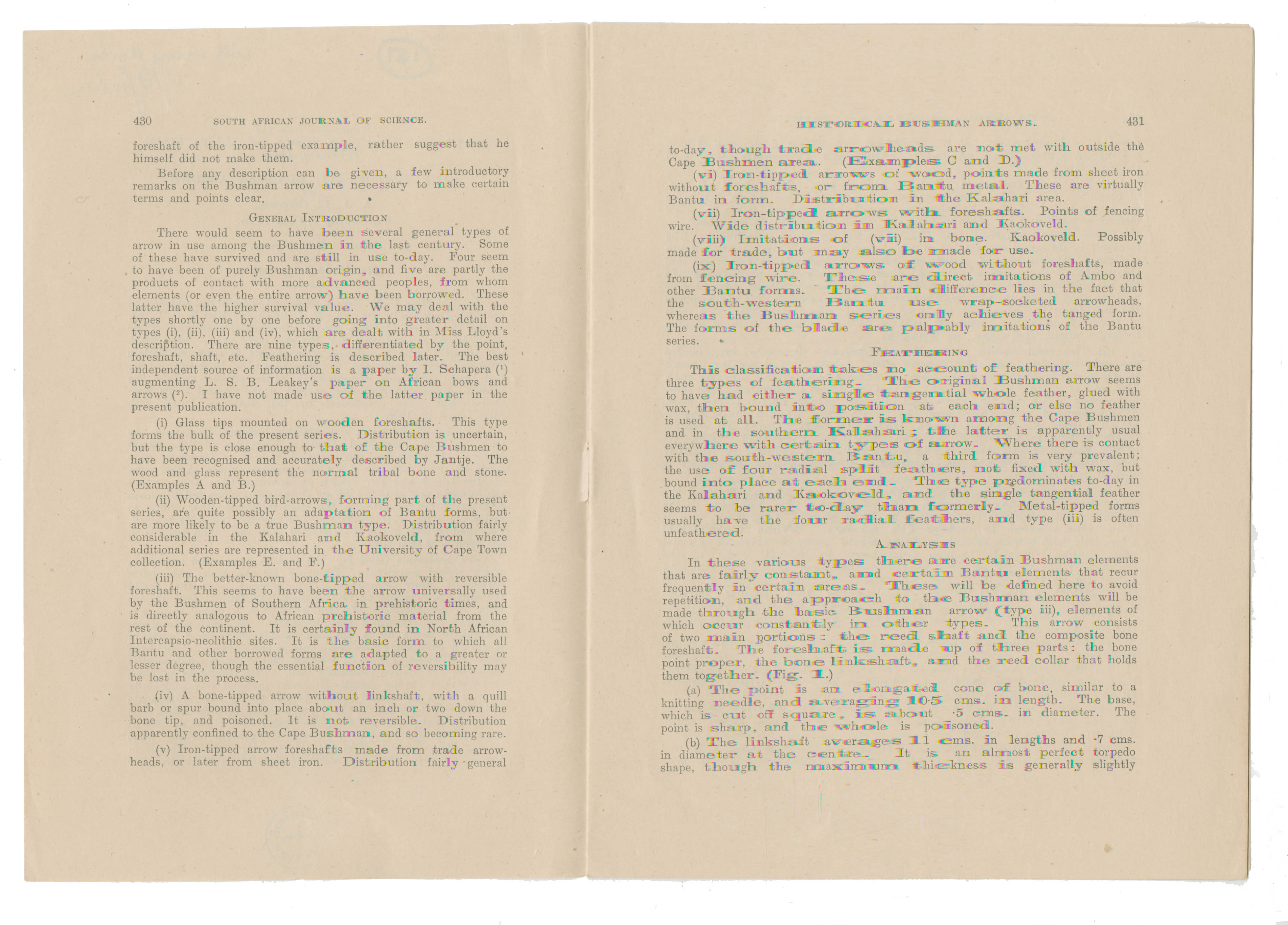 Some historical bushman arrows, 'South African Journal of Science', Volume XLI (p.429-443), February 1945 (Reprint).