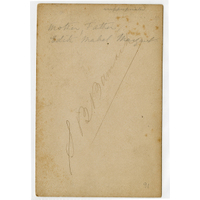On the back is the photographer's angled signature 4¾ inches long, "S.B. Barnard" and inscribed in pencil: "Mother, Father, Edith, Mabel, Margaret." L. to R.: Bleek (seated), Mabel leaning against Bleek, Edith (seated). Margie is standing supported by Edith and leaning against Jemima (standing). Bleek's top hat and Jemima's ribboned hat are on the ground in front of the group. Based on the similarities noted in #90 above, it seems very probable that #s 90 and 91 were taken on the same day. As only three of the Bleek children appear in this group family photograph, it is possible that it was taken shortly before the birth of Dorothea on March 26th 1873. If so, Edith would have been 9, Mabel 3 and Margie around 22 months.