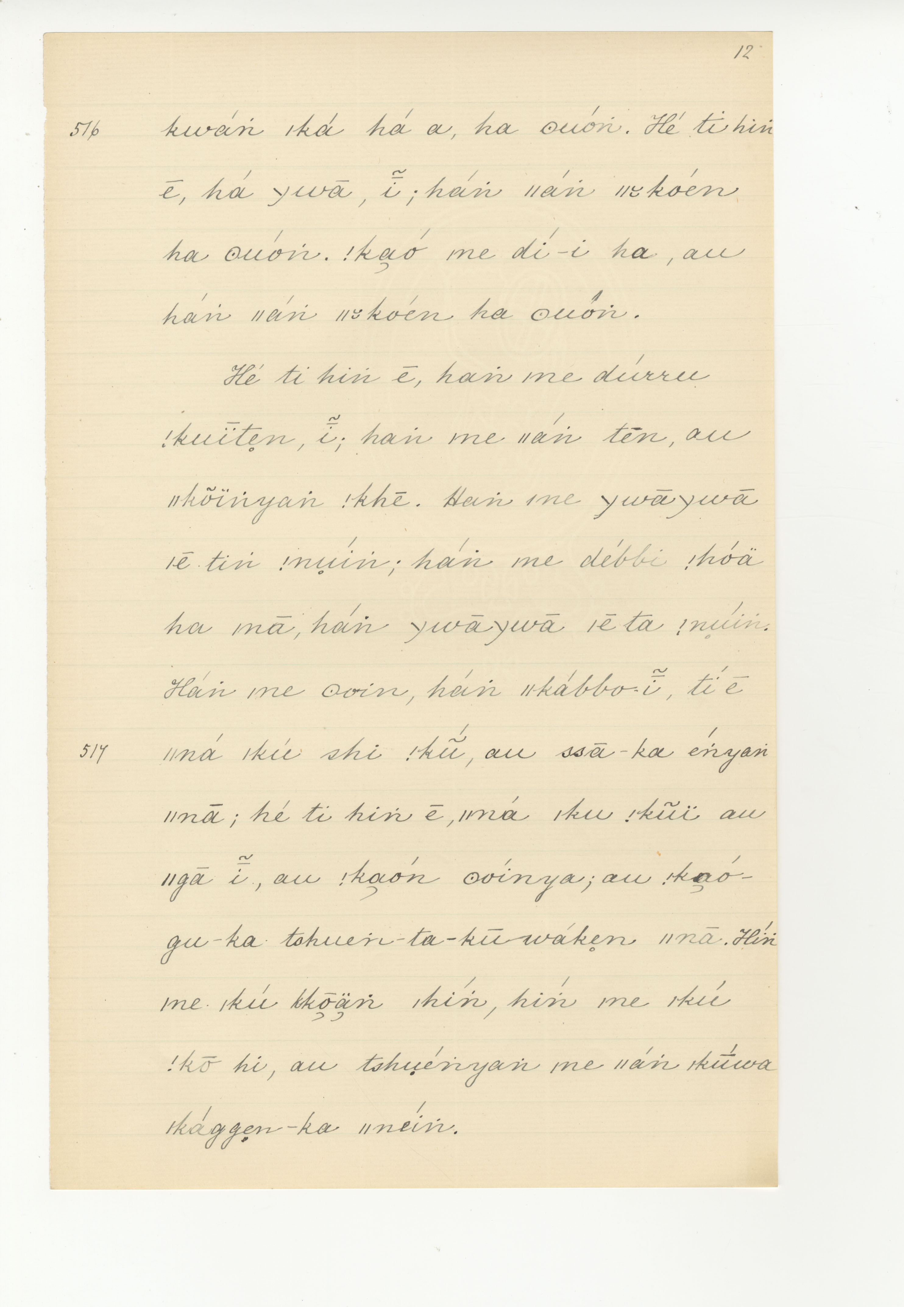 Manuscript page taken from ǁkabbo's story, The |kaggen who took |kammanga's shoe, and turned it into an eland -- in Lloyd notebook 4 (dated 1871), pages (continuing from) 516 to 517.