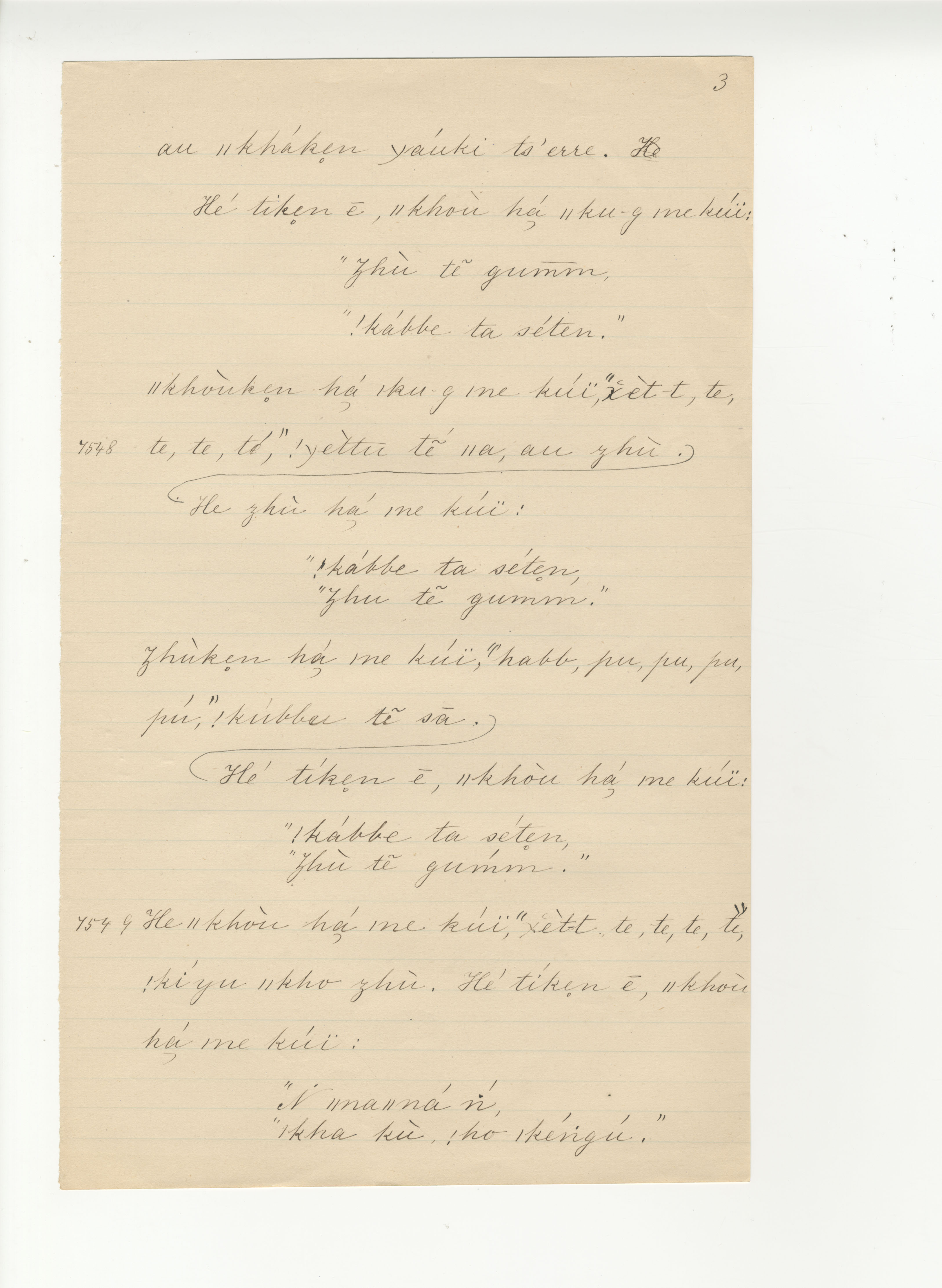 Manuscript page taken from |han≠kass'o's story, The Mantis, the Mice and the Beetle -- in Lloyd notebook 18, pages 7547 to 7549