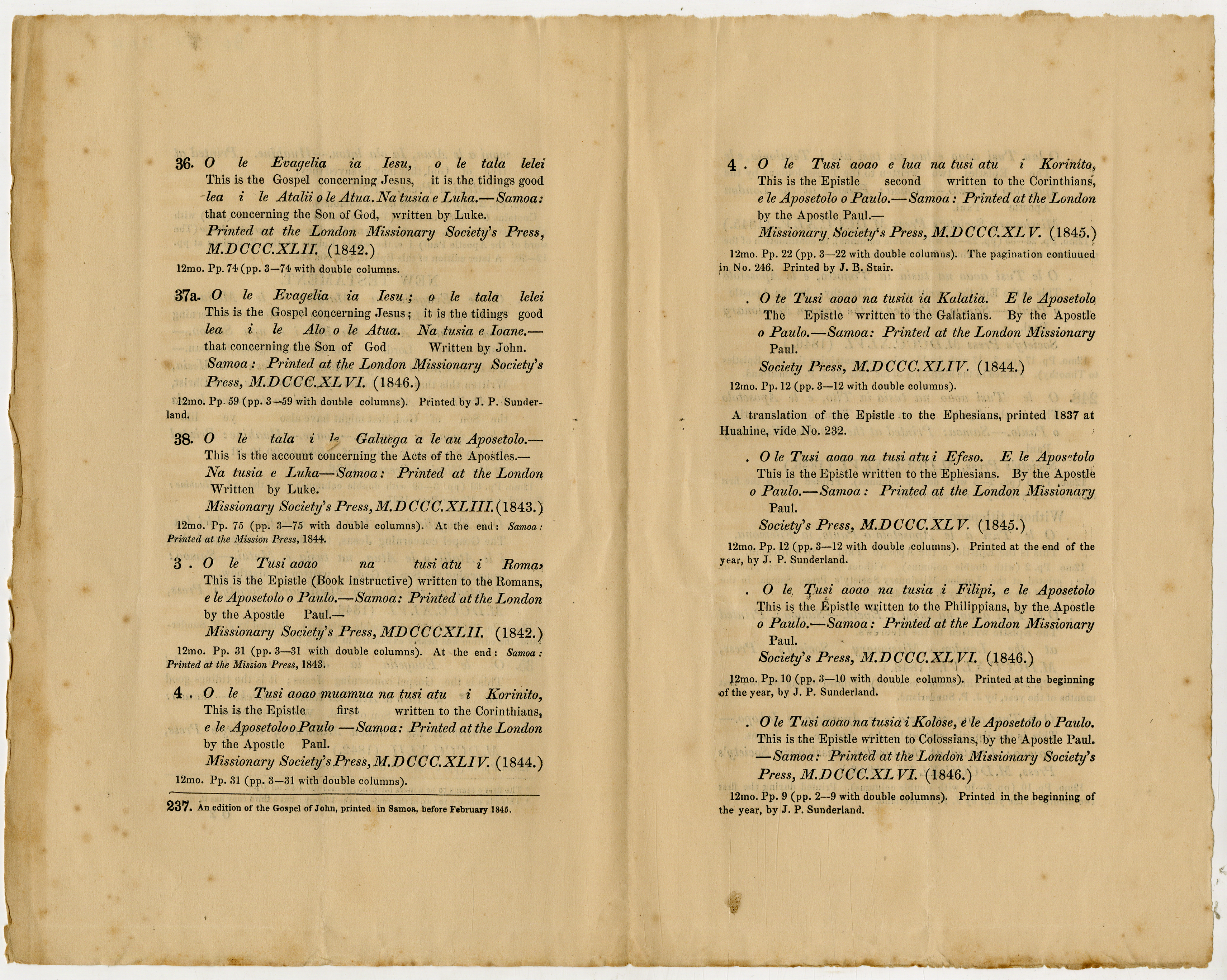 Samoan New Testament, London Missionary Society's Press (works printed at the), the Grey Library (i.e., the Grey Collection)